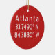 Coordonnées de latitude et longitude pour Atlanta, GA dans la police industrielle blanche moderne sur arrière - plan rouge. Personnaliser avec nom/message personnalisé sur le dos
