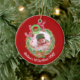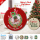 Ajoutez la photo, le nom et la date de votre bébé pour personnaliser cette couronne d'aquarelle festive, joignez le premier ornement décoratif de Noël du bébé avec Santas Little Helper écrit au verso.