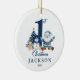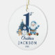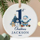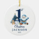 Célébrez le jalon de votre petit avec notre premier ornement de Noël personnalisé, avec une adorable Père Noël entourée de cadeaux festifs et d'un charmant bonhomme de neige. Ce magnifique ornement est conçu pour commémorer le premier Noël de votre bébé, avec un grand numéro accrocheur personnalisé et date. Rendre ce Noël inoubliable en capturant la joie de la première saison de vacances de votre bébé avec ce délicieux ornement.
