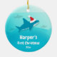 Baby First Christmas Blue Shark Céramique OrnamentVacances Design | ©Melissa Patton - Artiste/Illustrateur