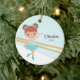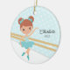 Personnalisez Dated Mignonne petite brune ballerine Christmas Ornement mis sur une barre avec arrière - plan point bleu. Un merveilleux cadeau de Noël qui sera chéri pendant de nombreuses années.