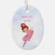 Ce magnifique décor de Noël de ballet présente une adorable ballerine aux cheveux rouges dansant devant un arrière - plan de bokeh violet aux lumières de fées. Personnalisez avec un nom et une année!