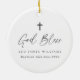 A timeless Baptism ornament featuring your baby’s photo on the front and “God Bless” with the details of their special day on the back. A beautiful keepsake to cherish and display year after year.