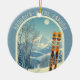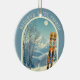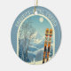 Ornament from a wonderful skiing holiday in the beautiful mountains of Baqueira-Beret Spain España ski area! This Ornament features an arch with a stunning blue-grey mountain landscape and retro ski boards in an orange tribal pattern in the foreground. The rest is in a lovely light blue tone with the location lettering in a modern font. The design is a lovely combination of retro and modern, and I hope you enjoy it!
