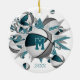 Ce joli ornement de basket-ball comporte une "explosion" de taille variée, des balles de basket turquoises, grises et blanches et des formes d'étoiles grises et turquoises - un minuscule motif pois blanc surplombe l'étoile turquoise - personnaliser avec le nom du joueur sur le devant, le numéro de maillot sur le devant et le dos, et l'année commémorative sur le dos - katz_d_zynes