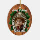 Un fer à cheval et des feuilles saints font un cadre parfait pour les premiers vacances de Noël de votre enfant.