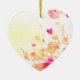 Faded flowers are on the front and more faded flowers are on the back of a heart-shaped ceramic Valentine tree ornament.