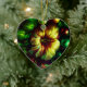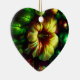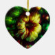 Bold flowers are on the front and on the back of a heart-shaped ceramic Valentine tree ornament.