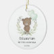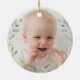 Cet adorable ornement en céramique présente un mignon ours en peluche tenant deux ballons vert pastel en forme de coeur ornés d'élégantes couronnes vertes. La conception du dos vous donne la possibilité d'ajouter la photo de votre bébé pour rendre le vêtement encore plus personnel et spécial!