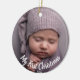 Ce ornement a photo bébé, année et mon premier script de Noël à l'avant et à l'arrière nous avons le nom du bébé, le poids de naissance, la hauteur de naissance, l'heure de naissance et la date de naissance. Parfait pour les nouveaux parents et grands-parents comme cadeau de Noël!