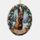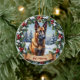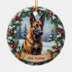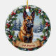 A beautiful, ultra-detailed Christmas design featuring a realistic portrait of the breed centered within a soft, festive winter frame. This elegant design includes pine branches, red berries, and snowflakes against a snowy backdrop, illuminated by warm holiday lighting. The balanced, round composition includes clear space below the dog for customization.