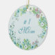 Ce beau gardien de Mères a une belle aquarelle de fleurs peintes et de verdure dans différentes nuances de bleu, lavande et vert contre un arrière - plan bleu ciel. Au centre, on lit #1 Mom dans une belle police de script. Elle peut accrocher ceci dans la maison pour toujours se souvenir de combien vous l'aimez et ensuite accrocher sur l'arbre à Noël !