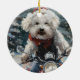 Décoration En Céramique Bichon Frise Chien équitation Moto Noël
