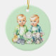 Faire-part de naissance ou de grossesse. Joli décor de Noël à thème bleu et vert avec deux jumeaux bleu et vert. Des garçons jumeaux faire-part. Personnalisé la date d'échéance au verso.