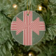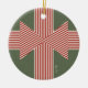 A ceramic ornament with bold and modern large geometrical bow with a customizable name or message in christmas colors to add charm to your holiday decor.