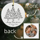 Add a touch of modern charm to your holiday decor with this Black Christmas Trees Doodles 1 Photo Merry Joyful Ceramic Ornament. The front features three whimsical hand-drawn Christmas tree doodles centered beautifully, with “Merry Christmas” written below in an elegant font and a customizable space underneath to add your family name and year.