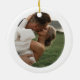 Cet ornement de Noël dispose d'une police de caractères manuscrite élégante et d'un design minimaliste moderne avec une photo à l'arrière. Changez facilement le nom, la date et la personnaliser en ajoutant votre propre photo pour une touche personnelle.