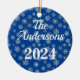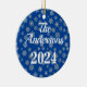 Ornement en bleu cobalt, modelé avec des flocons de neige, avec nom et date personnalisés