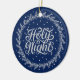 Une belle écriture argentée "Holy Night" entourée d'une couronne sur un arrière - plan bleu marine. Cet ornement de Noël nous rappelle la nuit où le Christ est né. Pour le rendre vraiment spécial, nous offrons des options personnalisées où vous pouvez le customiser avec votre nom et votre année, ce qui en fait un gardien chéri pour les années à venir. Parfait pour orner votre arbre ou pour donner à ceux qui vous sont chers, cet ornement unique combine les joies de Noël et l'esprit de foi d'une manière vraiment remarquable.