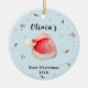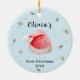 Premier ornement de Noël du bébé avec une petite aquarelle mignonne Santa Hat, fleur et étoile. C'est simple, minimal, adorable ornement de bébé. Le texte peut être personnalisé.