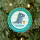 This personalized photo ornament is a wonderful keepsake for your favorite preschool grad or their family members. The front boasts a whimsical and playful visual of a cute, bold, kawaii, navy blue t-rex, and fun, handwritten typography over a light turquoise blue and white striped background. An adorable palm tree pattern overlaying turquoise blue is on the rim, framing the illustration. On the back is the photo of your choice. Personalize the custom text with your grad’s name and class year. Personalize the custom text with your graduate’s name and special message. Choice of ceramic, metal, glass or premium metal frame materials and a circle or square shape. Matching invites, banners, paper plates and napkins, stickers and other graduation goodies are also available in this cool and special collection. Guaranteed to preserve cherished memories of this special occasion!