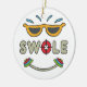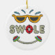 La conception de la musculation de Swole comporte une certaine sueur au-dessus d'une paire de nuances, le mot "Swole" avec le "o" comme cible, et un sourire fait d'un ensemble de poids. Un design amusant pour soulever et gonfler les ventilateurs.