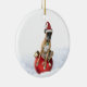 Un ornement en céramique avec la photo d'un boxeur Brindle dans un chapeau de Père Noël
