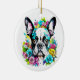 Le mignon Boston Terrier Dog entouré de fleurs rose, jaune et bleue. Ai art. Un cadeau mignon pour les propriétaires de Boston Terrier. Maman de Boston. Empreinte de patte.