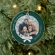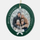 Répandez la fête avec ce ornement de Noël photo personnalisé avec un arc dessiné à la main qui couronne votre photo préférée dans un cadre circulaire - la création. Cet élégant ornement d'arbre de Noël vert et blanc comprend votre message personnalisé sur le dos, votre nom de famille et une photo. Le parfait rembourrage ou cadeau de faveur pour les amis et la famille!