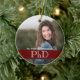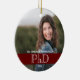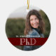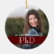Un ornement photo pour un doctorat avec des mots en blanc et une couleur bordeaux. Il montre le diplôme, le nom et l'année. Customisez cette décoration, ajoutez-la à votre panier et célébrez cette grande réalisation pour les années à venir. <i>Photographie © Storytree Studios, Stanford, CA</i>