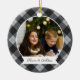 Un joli ornement photo double face affichant une photo préférée de chaque côté, sur un arrière - plan de buffle gris et noir. Personnalisez avec une légende personnalisée sur le devant en lettres manuscrites, et ajoutez l'année à l'arrière.