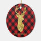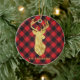 Buffalo Plaid Gold Deer Monogram Ornement en céramique de Noël