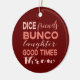 Mots de style typographique moderne dans les tons roses accentués avec un arrière - plan rouge de vacances. Parfait pour l'échange de décorations ou votre joueur de Bunco préféré. Dice, amis, bunco, rire, bons moments, lancer des mots sur le thème du bunco.