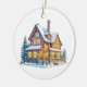 Joli décor de Noël personnalisé avec un joli cabine en aquarelle et des pins.