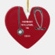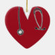 Cadeau d'infirmière créatif et souvenir de fin d'études en soins infirmiers avec scrubs d'hôpital rouges et stéthoscope. Pour personnaliser, modifiez le texte pour créer un ornement personnalisé pour la remise de diplôme d'infirmière.