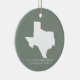 Voici notre "Texas Sage Green Ceramic Ornament with Photo", un ajout serein et personnalisé à votre décor de vacances. Conçu avec soin, cet ornement en céramique présente un arrière - plan vert sauge apaisant orné d'un graphique de l'état du Texas et offre de l'espace pour ajouter votre photo chère. La douce teinte verte de sauge évoque la tranquillité et se marie joliment avec le thème texan, ce qui en fait un ornement unique et chaleureux à accrocher sur votre arbre. Que ce soit pour la grâce de votre arbre ou pour un don réfléchi, ce ornement vert sauge célèbre la fierté texane et les souvenirs personnels. C'est le moyen idéal pour imprégner votre saison de vacances d'un sentiment de calme et de nostalgie tout en montrant votre amour pour l'État étoilé Lone et vos moments spéciaux capturés sur la photo.