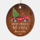 Écriture Calligraphique Moderne Notre Premier Noël en Tant que M. et Mme. - Ornement de Camion Rouge Aquarelle Vintage - Impression sur Bois Rustique