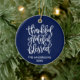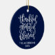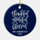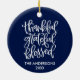 Calligraphie Merci gracieux ornement béni - Nom de famille et année - Bleu de la Marine d'hiver