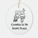 Camping est My Happy Place avec une scène de camping sur un ornement en céramique.