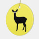 Une silhouette de cerf debout sur le côté mais regardant vers le spectateur. Le cerf a de grandes lumières blanches lumineuses au lieu des yeux.