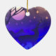 Ce charmant coeur en céramique d'hiver présente une paisible scène de nuit aux tons bleus de la silhouette d'un cerf dans les bois avec un arrière - plan étoilé. Un beau cadeau de Noël, et une décoration d'arbre insolite.