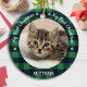 Mon premier Noël ! Décorez votre arbre ou envoyez un cadeau spécial avec ce super mignon personnalisable personnalisation de l'ornement de vacances photo animal de compagnie. Ajoutez votre photo de chats et personnalisez avec le nom et l'année. L'ornement est double face, vous pouvez faire des photos différentes de chaque côté. DROIT D'AUTEUR © 2020 Judy Burrows, Black Dog Art - Tous droits réservés. Chat Animal Photo Green Plaid Kitten Premier ornement en céramique de Noël