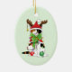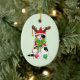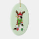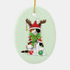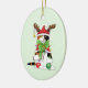Chateau calico mignon habillé de lumières de Noël, de bois farcis, chapeau de Noël, et un grand arc vert sur fond de vert clair, Le chaton n'est pas heureux !