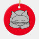 Un chat gris qui dort avec un sourire sur le visage contre un arrière - plan rouge est un cadeau amusant pour les amoureux de félins, les travailleurs d'abris pour animaux et les familles d'accueil de chats.