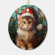 Décoration En Céramique Chat mignon avec Père Noël Casquette Vitrail Noël
