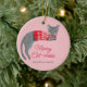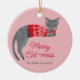 Un bel ornement avec un chaton chaton de Noël gris et élégant sur un arrière - plan rose. Oeuvre originale de Caroline Bonne Müller.