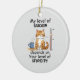 Libérez la sass avec cet ornement "Mon niveau de sarcasme dépend de votre niveau de stupidité" ! Doté d'un mignon chat orange à l'expression hilarante et pleine d'humour, ce dessin est parfait pour ceux qui aiment l'humour intelligent et le charme félin. Un incontournable pour les amateurs de chat et les spécialistes du sarcasme, c’est le cadeau idéal pour tous ceux qui aiment une touche d’attitude ludique.