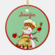 Cute Chef Personnalisé Snowman Noël Ornament. Grand cadeau pour votre cuisinier ou cuisinier préféré. Ajoutez son nom à ce mignon bonhomme de neige avec un casquette de chef, un tablier coloré et une cuillère de cuisine. Un Sucre de canne dans sa poche ajoute du charme à cet ornement de Noël.