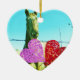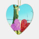 Décoration En Céramique Cheval blond et Coeurs rose et rouge
