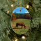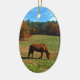 Décoration En Céramique Cheval Brown rouge, arbres de chute, ciel bleu